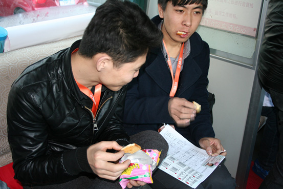 醫務人員隨時為大家準備了飲用水和餅干供大家使用,用風趣的解答緩解部分人的緊張情緒